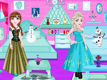 Используйте мышь, чтобы одеть Эльзу и Анну.
